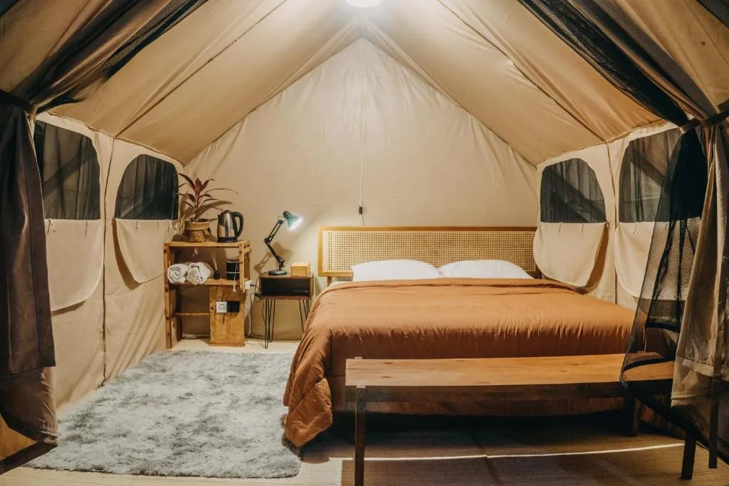 Masuk ke dalam area private, Anda akan disuguhkan dengan desain tata ruang kamar yang menenangkan. Setiap unit di Alamu Eco Lodge tidak sekadar menawarkan tempat untuk tidur, melainkan sebuah ruang relaksasi holistik. Penggunaan material sprei premium, kasur berstandar ortopedi, hingga sistem kedap suara yang mumpuni diaplikasikan untuk memastikan kualitas tidur Anda tidak terganggu. Properti ini juga menyediakan berbagai variasi tipe kamar yang bisa disesuaikan dengan budget Anda, mulai dari tipe Family Room, Deluxe Room, hingga Superior Double bagi Anda yang menginginkan keluasan ekstra dan fasilitas lebih mumpuni.