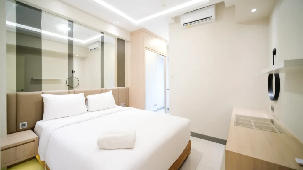 Masuk ke dalam area private, Anda akan disuguhkan dengan desain tata ruang kamar yang menenangkan. Setiap unit di Comfortable and Best Price Living 2BR at Anderson Supermall Mansion Apartment By Travelio tidak sekadar menawarkan tempat untuk tidur, melainkan sebuah ruang relaksasi holistik. Penggunaan material sprei premium, kasur berstandar ortopedi, hingga sistem kedap suara yang mumpuni diaplikasikan untuk memastikan kualitas tidur Anda tidak terganggu. Properti ini juga menyediakan berbagai variasi tipe kamar yang bisa disesuaikan dengan budget Anda, mulai dari tipe Premium Deluxe, Luxury Room, hingga Presidential Suite bagi Anda yang menginginkan keluasan ekstra dan fasilitas lebih mumpuni.