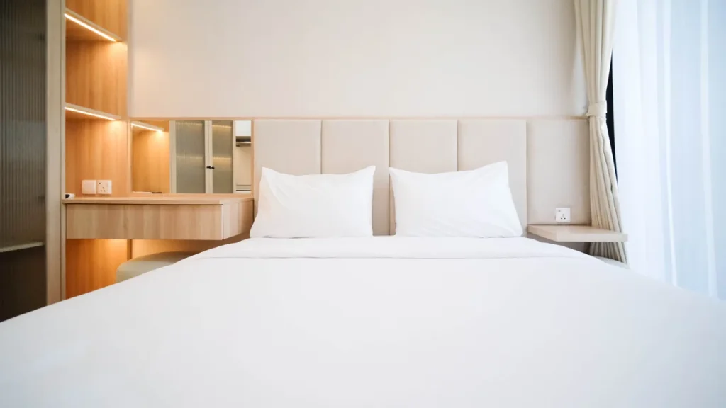 Masuk ke dalam area private, Anda akan disuguhkan dengan desain tata ruang kamar yang menenangkan. Setiap unit di Cozy Studio Apartment Connected to Mall at The Vertu By Travelio tidak sekadar menawarkan tempat untuk tidur, melainkan sebuah ruang relaksasi holistik. Penggunaan material sprei premium, kasur berstandar ortopedi, hingga sistem kedap suara yang mumpuni diaplikasikan untuk memastikan kualitas tidur Anda tidak terganggu. Properti ini juga menyediakan berbagai variasi tipe kamar yang bisa disesuaikan dengan budget Anda, mulai dari tipe Premium Deluxe, Presidential Suite, hingga Executive Suite bagi Anda yang menginginkan keluasan ekstra dan fasilitas lebih mumpuni.