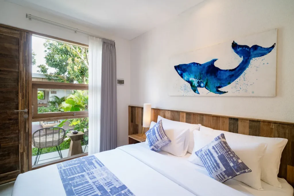 Interior kamar didesain secara cermat memadukan gaya modern dengan pencahayaan yang hangat. Material linen berkualitas dan kasur ergonomis menjamin Anda mendapatkan istirahat yang optimal setelah seharian beraktivitas di luar.