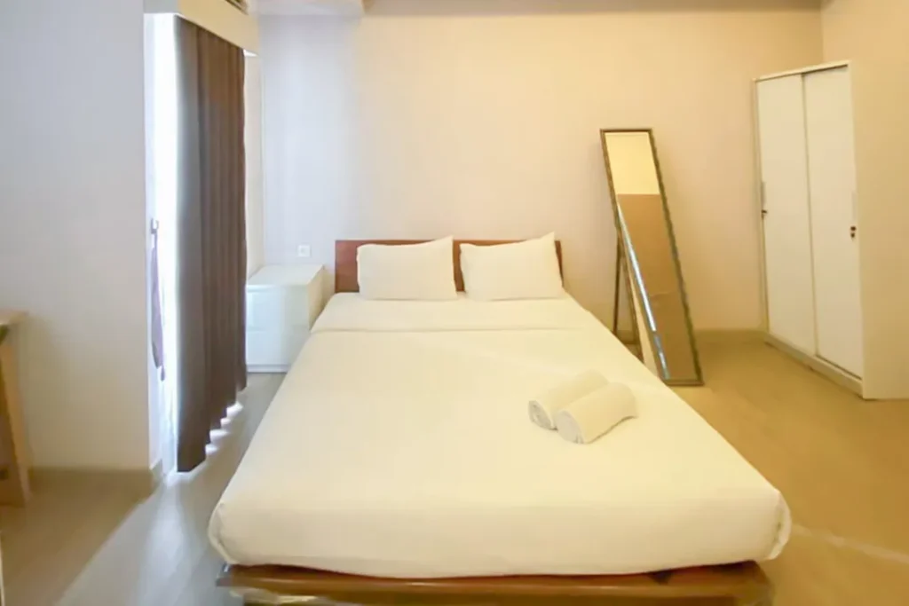 Masuk ke dalam area private, Anda akan disuguhkan dengan desain tata ruang kamar yang menenangkan. Setiap unit di Lovely 1BR (No Living Room) at Cordova Edupartment Semarang Apartment by Travelio tidak sekadar menawarkan tempat untuk tidur, melainkan sebuah ruang relaksasi holistik. Penggunaan material sprei premium, kasur berstandar ortopedi, hingga sistem kedap suara yang mumpuni diaplikasikan untuk memastikan kualitas tidur Anda tidak terganggu. Properti ini juga menyediakan berbagai variasi tipe kamar yang bisa disesuaikan dengan budget Anda, mulai dari tipe Presidential Suite, Luxury Room, hingga Executive Suite bagi Anda yang menginginkan keluasan ekstra dan fasilitas lebih mumpuni.