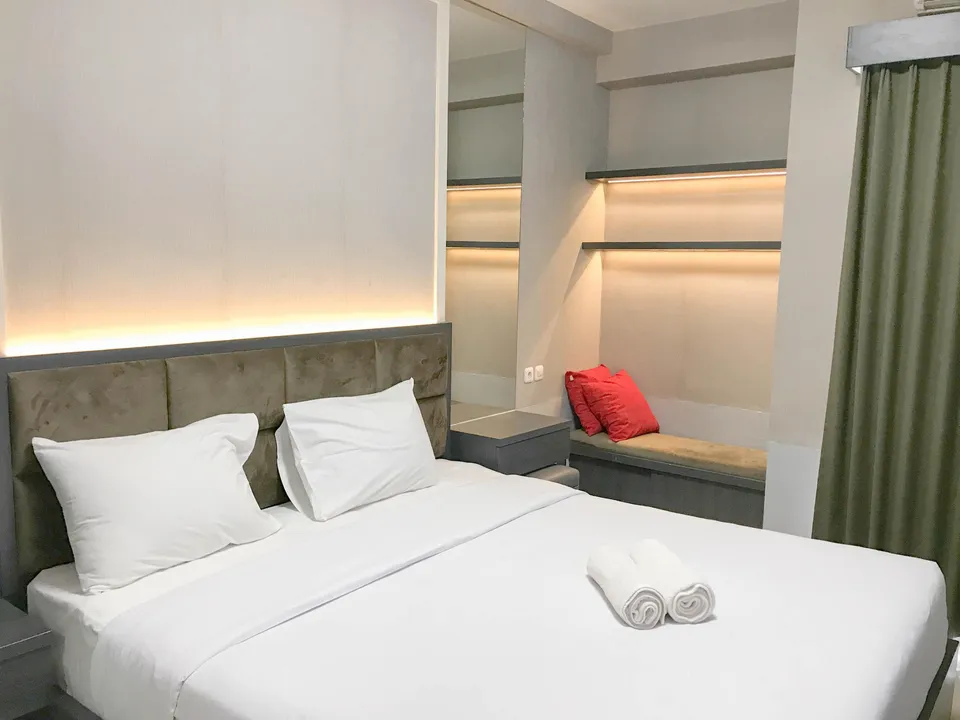 Masuk ke dalam area private, Anda akan disuguhkan dengan desain tata ruang kamar yang menenangkan. Setiap unit di Minimalist and Cozy Studio Apartment Bale Hinggil By Travelio tidak sekadar menawarkan tempat untuk tidur, melainkan sebuah ruang relaksasi holistik. Penggunaan material sprei premium, kasur berstandar ortopedi, hingga sistem kedap suara yang mumpuni diaplikasikan untuk memastikan kualitas tidur Anda tidak terganggu. Properti ini juga menyediakan berbagai variasi tipe kamar yang bisa disesuaikan dengan budget Anda, mulai dari tipe Executive Room, Family Room, hingga Grand Deluxe bagi Anda yang menginginkan keluasan ekstra dan fasilitas lebih mumpuni.
