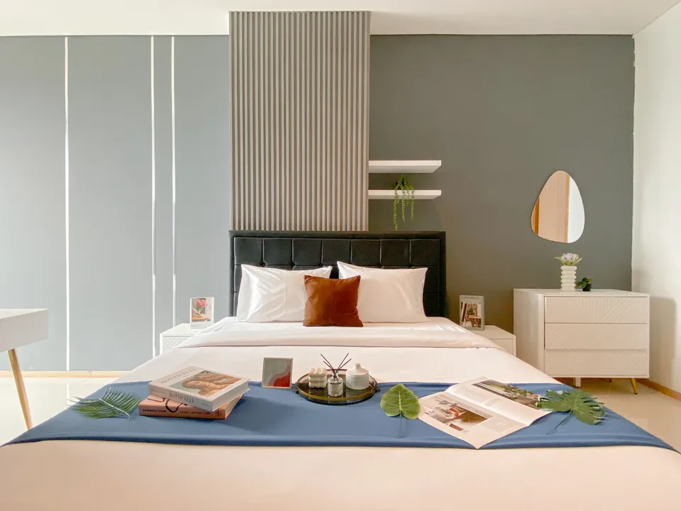 🏨 Nama Hotel: Modern Monochromatic 2BR near LRT Station at Samara Suites Apartment By Travelio