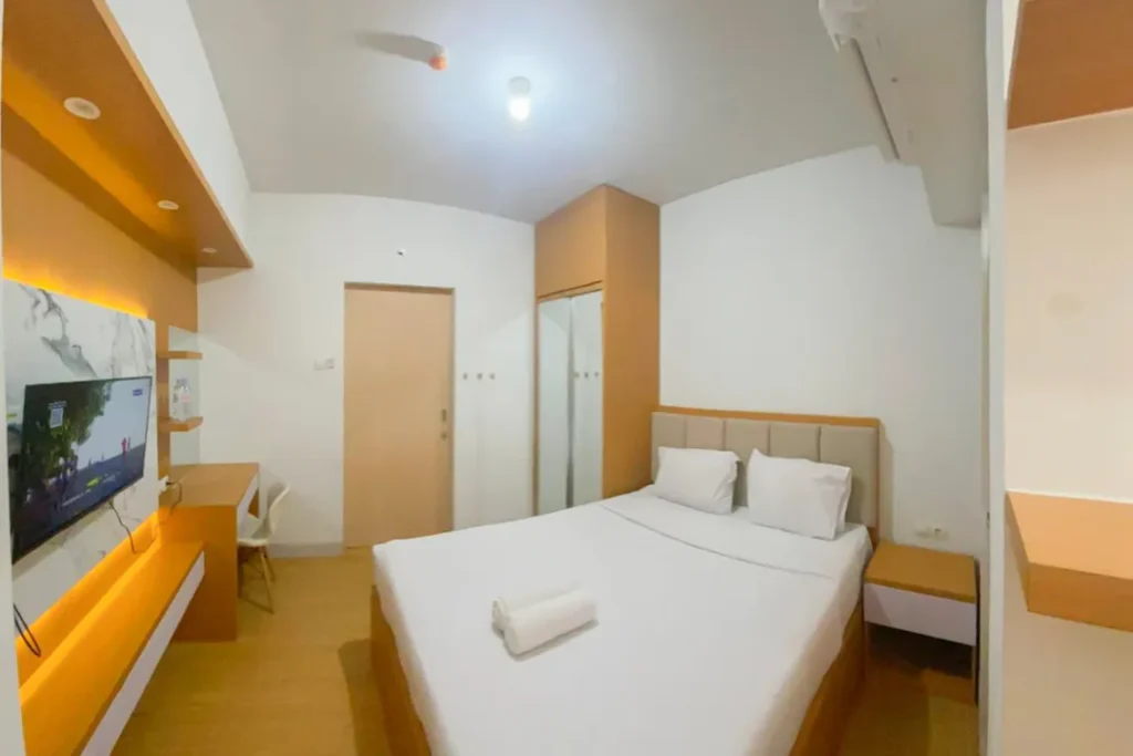 Masuk ke dalam area private, Anda akan disuguhkan dengan desain tata ruang kamar yang menenangkan. Setiap unit di Neat 1BR without Living Room at Apartment The Alton By Travelio tidak sekadar menawarkan tempat untuk tidur, melainkan sebuah ruang relaksasi holistik. Penggunaan material sprei premium, kasur berstandar ortopedi, hingga sistem kedap suara yang mumpuni diaplikasikan untuk memastikan kualitas tidur Anda tidak terganggu. Properti ini juga menyediakan berbagai variasi tipe kamar yang bisa disesuaikan dengan budget Anda, mulai dari tipe Premium Deluxe, Luxury Room, hingga Presidential Suite bagi Anda yang menginginkan keluasan ekstra dan fasilitas lebih mumpuni.