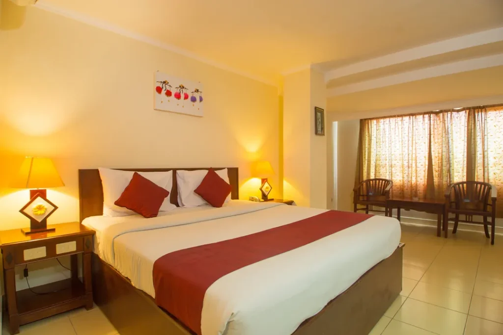 Interior kamar didesain secara cermat memadukan gaya modern dengan pencahayaan yang hangat. Material linen berkualitas dan kasur ergonomis menjamin Anda mendapatkan istirahat yang optimal setelah seharian beraktivitas di luar.