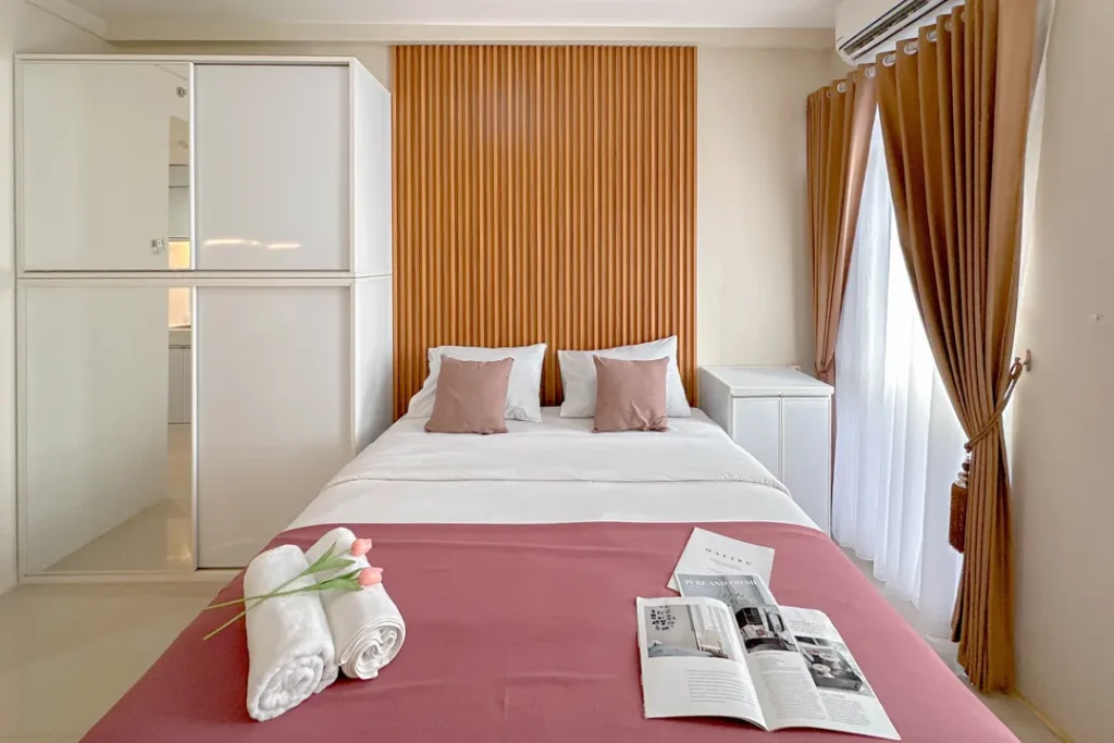 Masuk ke dalam area private, Anda akan disuguhkan dengan desain tata ruang kamar yang menenangkan. Setiap unit di Spacious and Comfy Studio at Bale Hinggil Apartment By Travelio tidak sekadar menawarkan tempat untuk tidur, melainkan sebuah ruang relaksasi holistik. Penggunaan material sprei premium, kasur berstandar ortopedi, hingga sistem kedap suara yang mumpuni diaplikasikan untuk memastikan kualitas tidur Anda tidak terganggu. Properti ini juga menyediakan berbagai variasi tipe kamar yang bisa disesuaikan dengan budget Anda, mulai dari tipe Business Room, Superior Double, hingga Grand Deluxe bagi Anda yang menginginkan keluasan ekstra dan fasilitas lebih mumpuni.