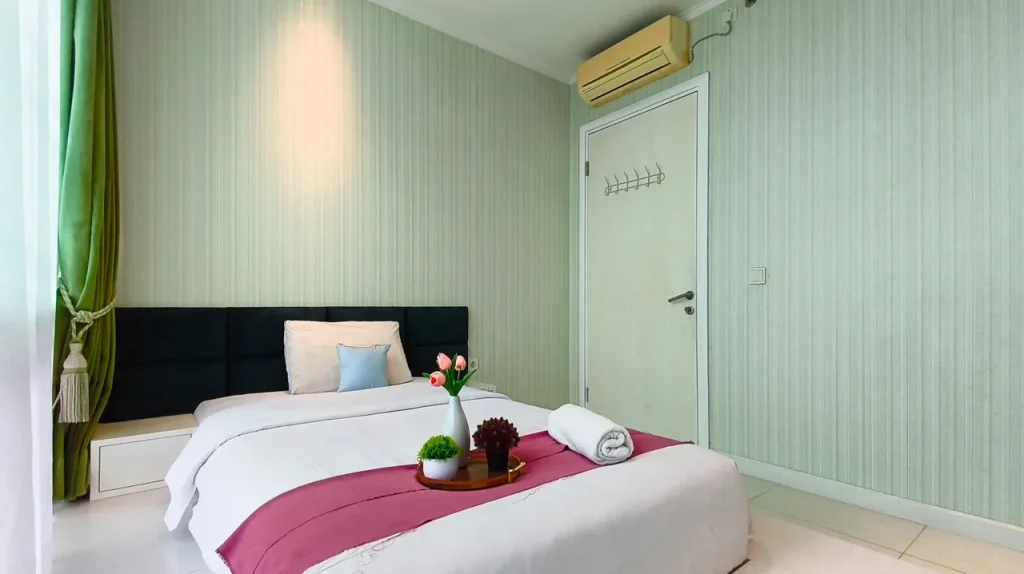 Masuk ke dalam area private, Anda akan disuguhkan dengan desain tata ruang kamar yang menenangkan. Setiap unit di Spacious and Lavish 4BR at Apartment The VIA and The Vue Ciputra World By Travelio tidak sekadar menawarkan tempat untuk tidur, melainkan sebuah ruang relaksasi holistik. Penggunaan material sprei premium, kasur berstandar ortopedi, hingga sistem kedap suara yang mumpuni diaplikasikan untuk memastikan kualitas tidur Anda tidak terganggu. Properti ini juga menyediakan berbagai variasi tipe kamar yang bisa disesuaikan dengan budget Anda, mulai dari tipe Junior Suite, Premium Deluxe, hingga Luxury Room bagi Anda yang menginginkan keluasan ekstra dan fasilitas lebih mumpuni.