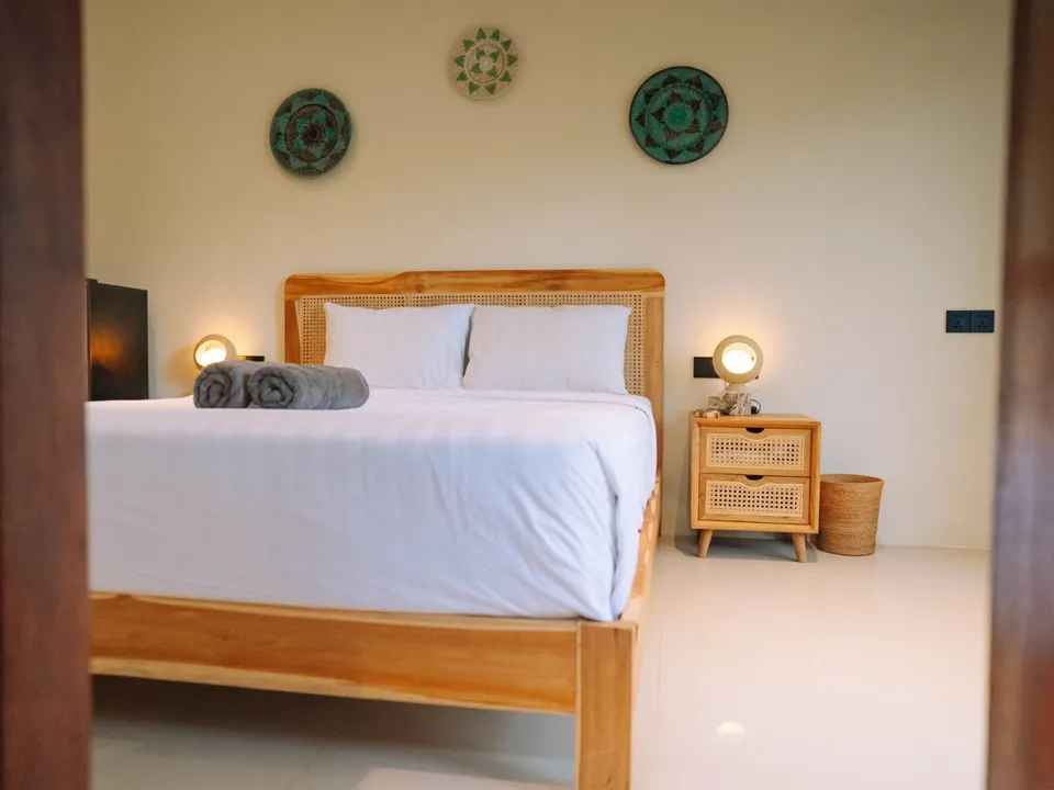 Interior kamar didesain secara cermat memadukan gaya modern dengan pencahayaan yang hangat. Material linen berkualitas dan kasur ergonomis menjamin Anda mendapatkan istirahat yang optimal setelah seharian beraktivitas di luar.