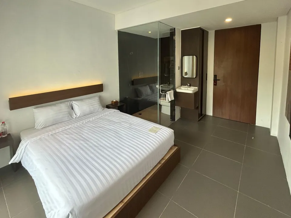 Interior kamar didesain secara cermat memadukan gaya modern dengan pencahayaan yang hangat. Material linen berkualitas dan kasur ergonomis menjamin Anda mendapatkan istirahat yang optimal setelah seharian beraktivitas di luar.