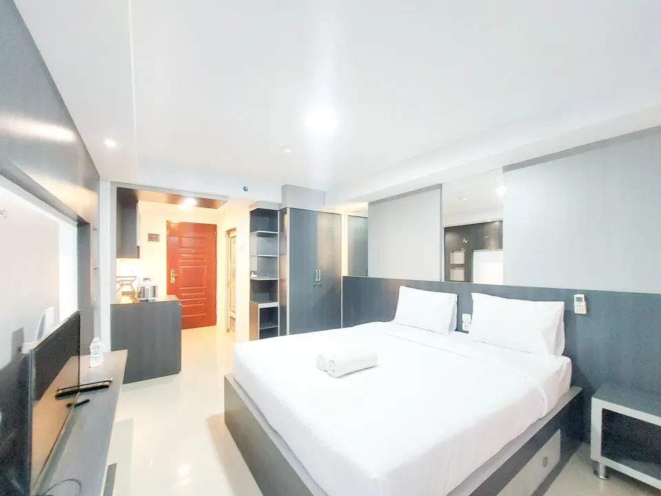 Masuk ke dalam area private, Anda akan disuguhkan dengan desain tata ruang kamar yang menenangkan. Setiap unit di Warm and Homey Studio Apartment at Mansyur Residence By Travelio tidak sekadar menawarkan tempat untuk tidur, melainkan sebuah ruang relaksasi holistik. Penggunaan material sprei premium, kasur berstandar ortopedi, hingga sistem kedap suara yang mumpuni diaplikasikan untuk memastikan kualitas tidur Anda tidak terganggu. Properti ini juga menyediakan berbagai variasi tipe kamar yang bisa disesuaikan dengan budget Anda, mulai dari tipe Grand Deluxe, Business Room, hingga Premier Room bagi Anda yang menginginkan keluasan ekstra dan fasilitas lebih mumpuni.