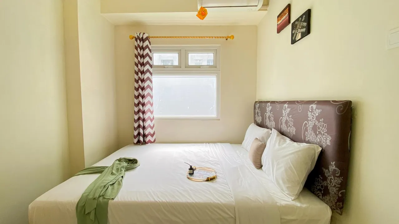 ๐จ RINGKASAN INFORMASI HOTEL ๐จ Nama Hotel: Restful and Good Choice 2BR Green Pramuka City Apartment near Mall By Travelio